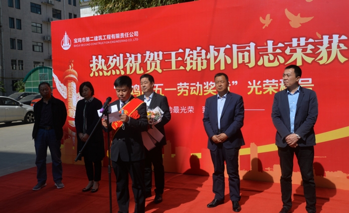 4月27日上午,寶雞市慶祝“五一”國際勞動節(jié)大會在萬福酒店召開,公司第三十四項(xiàng)目部項(xiàng)目經(jīng)理王錦懷同志榮獲寶雞市“五一勞動獎(jiǎng)?wù)隆惫鈽s稱號。公司在總部辦公樓前舉行了歡迎儀式,公司董事長胥立、總經(jīng)理張小揚(yáng)、黨委書記景旭東、黨委副書記王紅衛(wèi)、工會主席王建成等領(lǐng)導(dǎo)出席,總部全體人員、第三十四項(xiàng)目部員工代表參加。